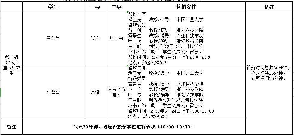 答辩学生及时间安排: