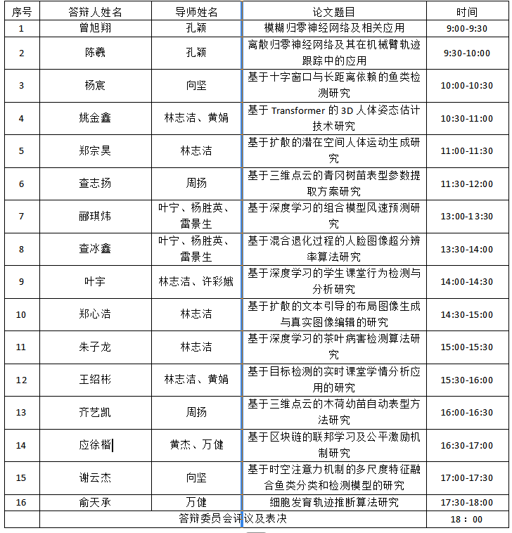 答辩时间:2025年5月14日 上午9点到18点