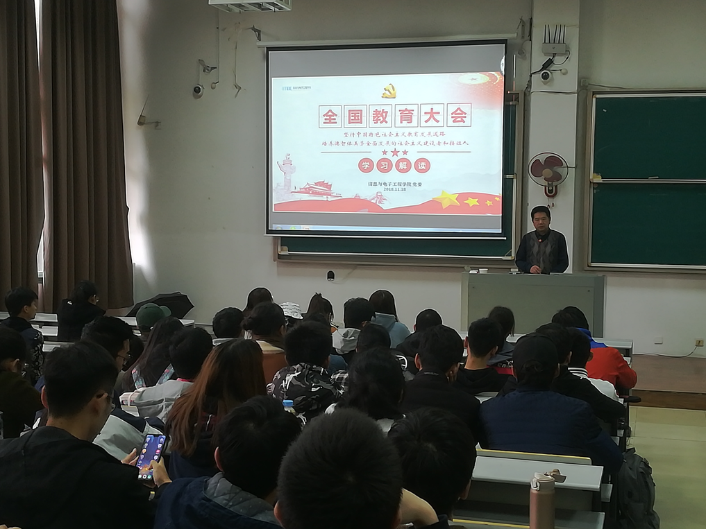 首先,傅晓炜书记整体上介绍了2018年9月10日在北京召开的全国教育大会。强调这是一次高规格的会议,体现了国家对教育的重视。重点向入党积极分子们介绍了国家主席习近平所强调的“5个‘人’的重要目标”,指出的“9个坚持”、明确的“1个‘根本任务’”等指示,深入浅出的解读了教育大会的内容,使同学们受益匪浅。