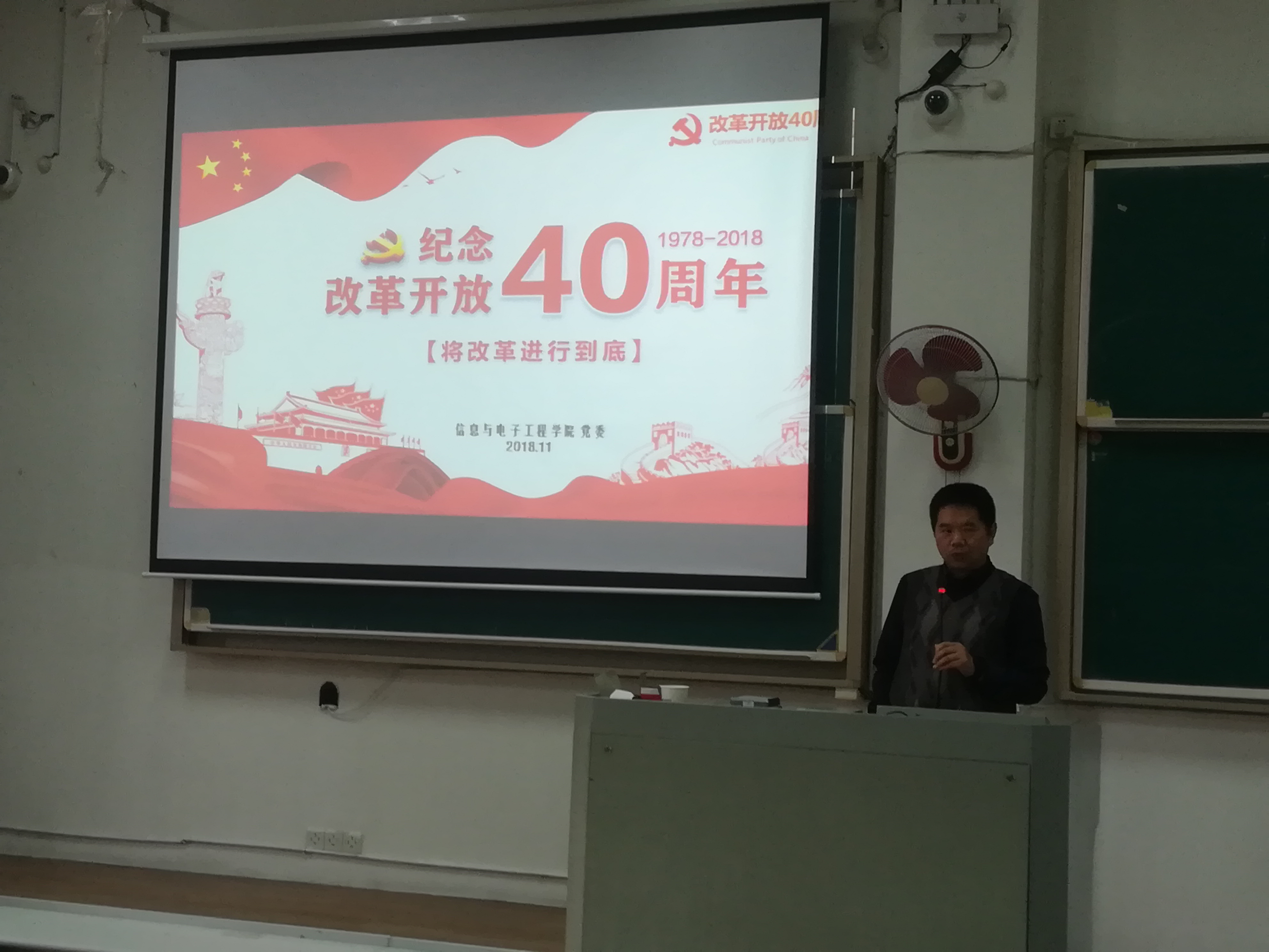 其次,傅晓炜书记从时段的历史维度跟入党积极分子分享了“庆祝改革开放40周年”的感悟。从十一届三中全会的召开明确了党的根本路线,再到现如今改革开放我们取得的成就、总结的经验、认识到的不足等,傅老师从各个方面了介绍了国家改革开放40周年的发展历程。
