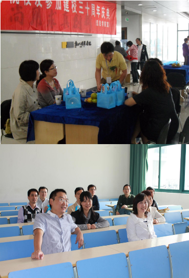 在C1大厅里,远道而来的学长学姐们难掩激动兴奋之情,时隔多年后的再次相聚,与母校,与曾经一起学习生活的同学,有种恍如隔世的感觉。校友们围坐在一起,闲话家长,聊着曾经,笑着过去,讲着现在,还有未来。在与校友们的闲聊中,一位学长开玩笑说,我还在找同学,人都认不出来了。走出了象牙塔,经过了社会的历练,他们的脸上多了分成熟,多了份干练。“一日为师终生为父”,就算离开多年,母校总有那么一些人一些事让你记着一辈子,难以忘记。校友们一回到双赢彩票