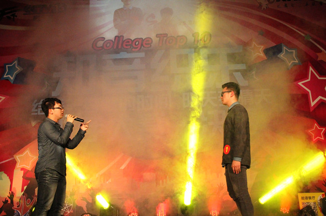 丁鼎。比赛至此,知音织乐歌手大赛的College top 10也全部出炉,十位选手分别是:王爽(语言)、王宁宁(经管)、丁鼎(机械)、洪晨晨(生化)、车建华(经管)、李婉琦(外国语)、郭建强(建工)、范翔(轻工)、计文艳(轻工)、陈建宇(艺术)。再次祝贺各位选手,至此知音织乐歌手大赛圆满结束。