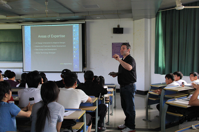 5月22日下午1:30,蓝色论坛第42期在C1-206准时开讲。本次讲座由来自犹他山谷大学的Michael Harper教授主讲。Michael Harper教授有丰富的工作和教学经验,作为网页内容主管和在线媒体负责人工作十多年后,加入犹他山谷大学数字媒体专业担任教师。目前致力于用户体验设计,有声读物和播客系统的设计和开发,交互式出版物的开发,以及媒体可用性的实验研究。