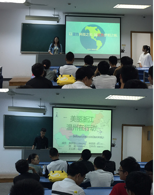 评比会上,参评团队依次通过PPT、视频等形式,生动地展示了各自的优秀成果,评委也对各实践团队进行认真点评,现场气氛热烈。最后由吾与祖团队进行实践展示,将目标指向杭州老龄化发展产业,引起深思。将经过评委评审,最终,浙科心暑期实践团队获得一等奖,正能量传播者团队获得二等奖,沙漠之鹰团队和Infos团队获得三等奖。
