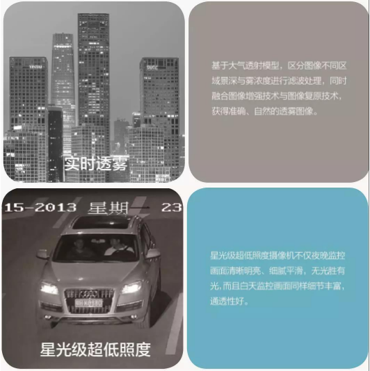 其中一个令人吃惊的是海康威视的透雾技术,能通过算法来将面前的浓雾“视若无物”。通过摄像头,将因雾和水气灰尘等导致朦胧不清的图像变得清晰。