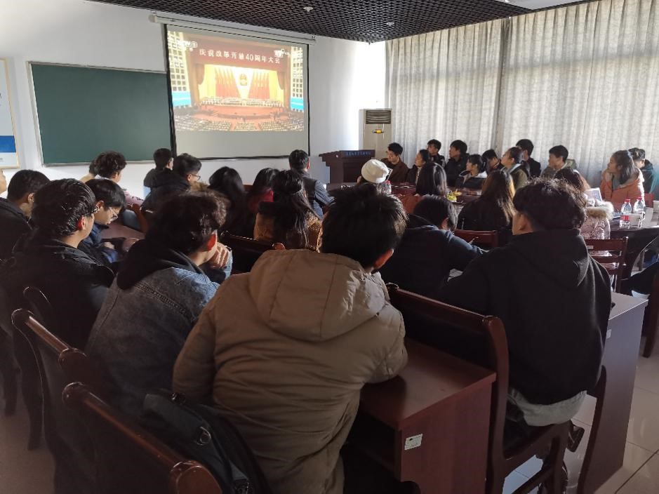 师生认真观看大会盛况,仔细聆听习近平总书记的重要讲话,深入了解改革开放40周年给中国带来的翻天覆地的变化。