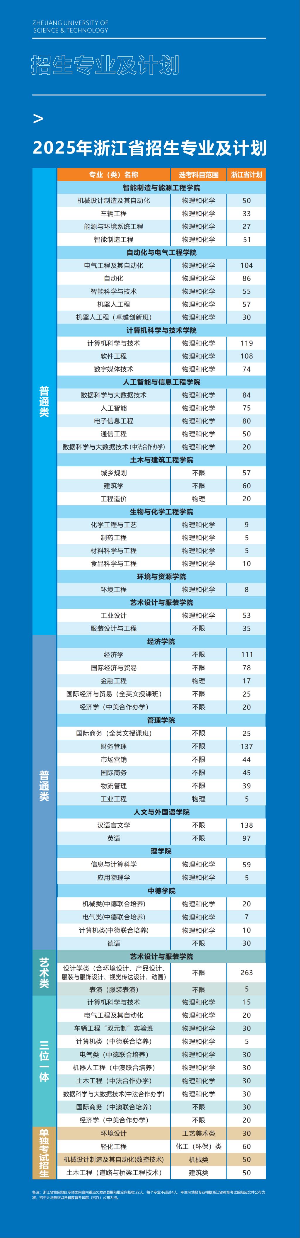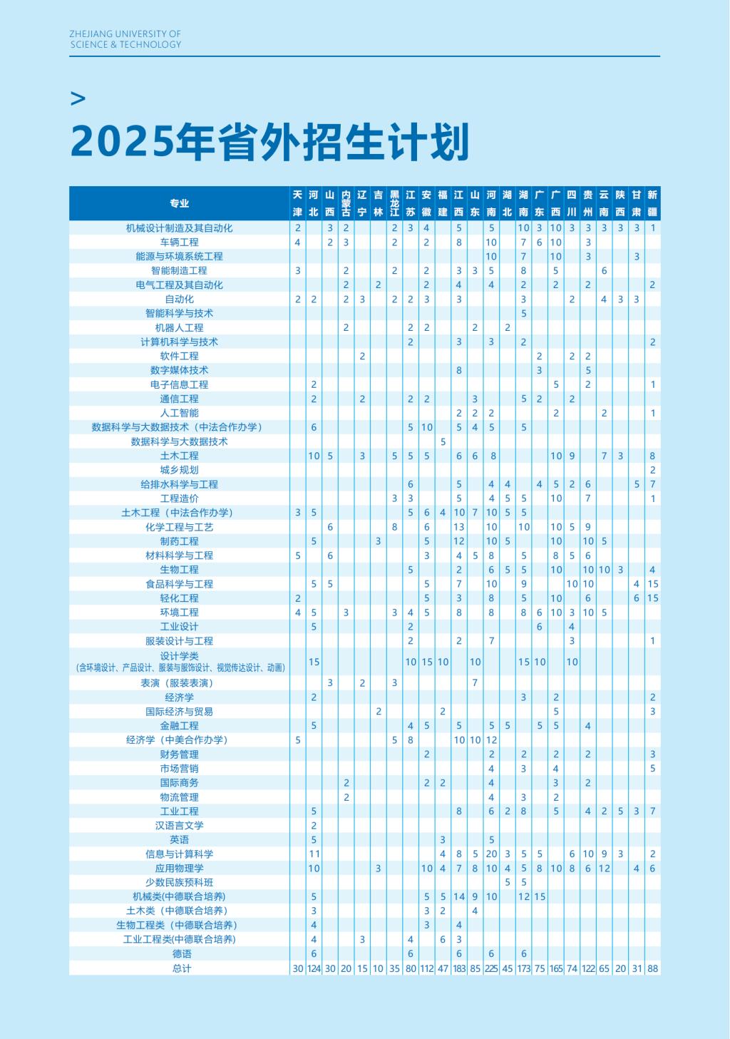 2025年计划招生5970人,其中浙江省内4106人,包括“三位一体”综合评价招生240人、普通类专业2277人、艺考类统考批(设计学类、表演(服装表演))268人、地方专项计划22人、单考单招本科459人(含中本一体化转入)、二学位60人、专升本计划780人。面向浙江省以外的23个省(市、自治区)计划招生1854人。不分省招生计划10人(预科班转入)。另外双赢彩票
